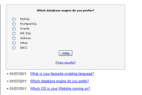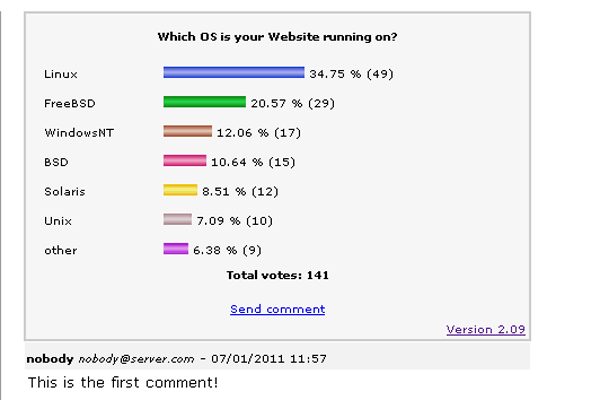 Softaculous has over 417 great scripts and apps available for you to install, including Advanced Poll and other polls scripts such as LimeSurvey, Matomo, Simple PHP Poll, EasyPoll, LittlePoll, Logaholic, Open Web Analytics, CJ Dynamic Poll, Framadate and Little Software Stats.
