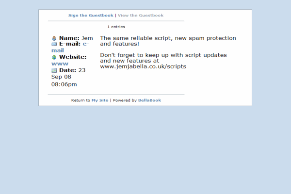 Softaculous has over 417 great scripts and apps available for you to install, including BellaBook and other guestbooks scripts such as phpBook, VX Guestbook, PHP Address Book, Advanced Guestbook, RicarGBooK, Lazarus and PHPKode Guestbook.