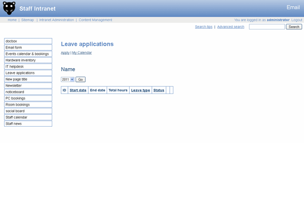 A module for staff to make online leave applications. When leave is approved an automated email is sent to the applicant.
