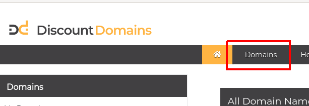 - Login to Discount Domains Client Area. Click Domains