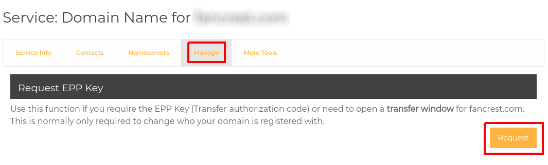 - Click Manage then Request Your domain UDAI or EPP code should be emailed to you. If you do not receive an email within 30 minutes please contact Discount Domains support.