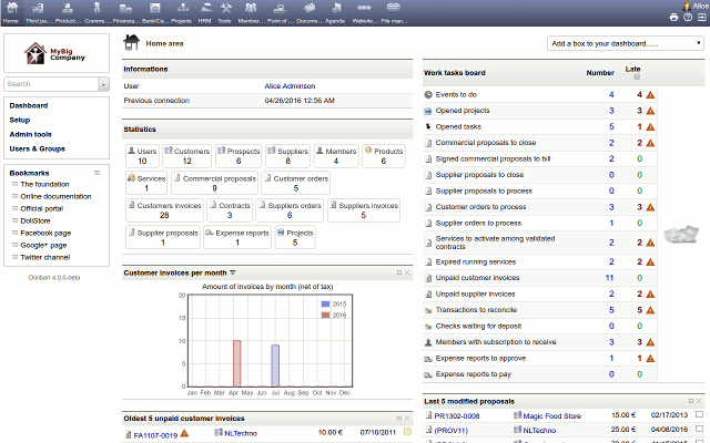 Dolibarr is a software built by modules addition, to manage small or medium companies, freelancers or foundations.