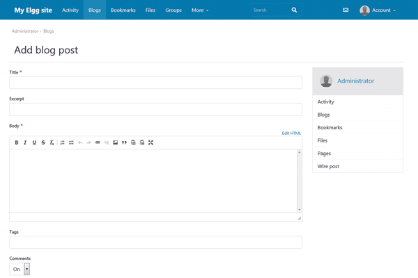 Elgg empowers individuals, groups and institutions to create their own fully-featured social environment