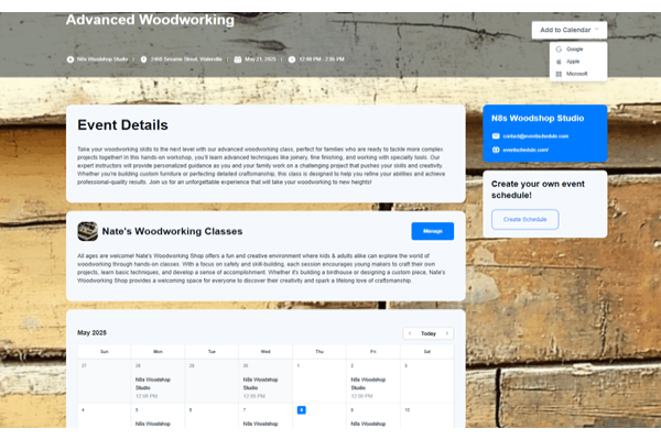 • Calendar Integration: Enable attendees to add events directly to Google, Apple, or Microsoft calendars.