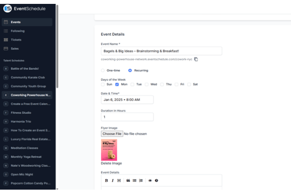 Event Schedule is an open-source platform to create calendars, sell tickets and streamline event check-ins with QR codes.