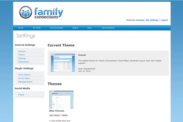 Softaculous has over 417 great scripts and apps available for you to install, including Family Connections and other socialnetworking scripts such as Oxwall, Jcow, Open Source Social Network, Dolphin, pH7Builder, Elgg 2, Etano, HumHub, Elgg 1 and UNA.