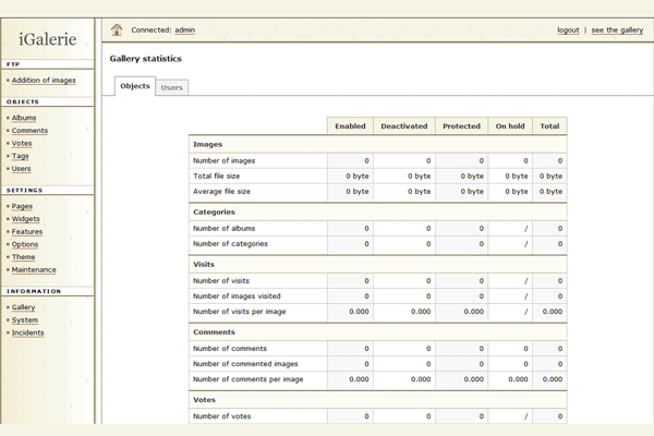 iGalerie offers all the features of a modern gallery: adding comments by your visitors, RSS feeds, sending multiple images, full-screen slideshow, management metadata EXIF ​​/ IPTC / XMP, cloud tags, URL rewriting, geolocation lock albums password, etc ...