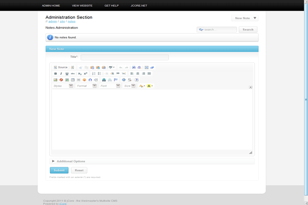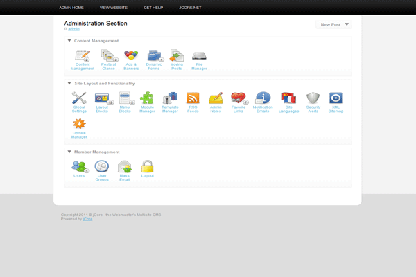 Softaculous has over 417 great scripts and apps available for you to install, including jCore and other cms scripts such as Bludit, Joomla, Open Real Estate, SofaWiki, MODX, Zikula, PluXml, Croogo, Tiki Wiki CMS Groupware 24 and e107.