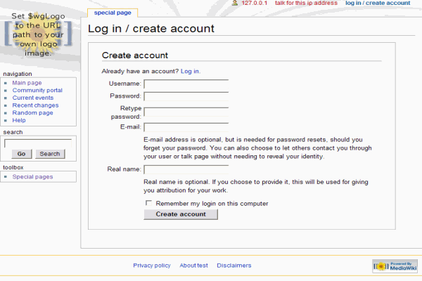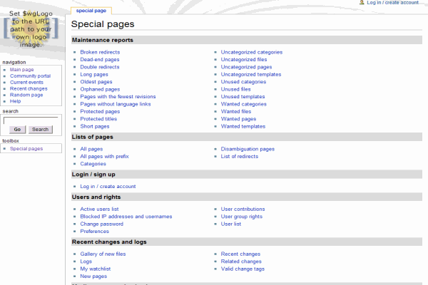 • Cookie-based account and login system, but anonymous users can also edit pages