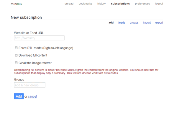 • Use the Bookmarklet to subscribe to a website directly from any browsers