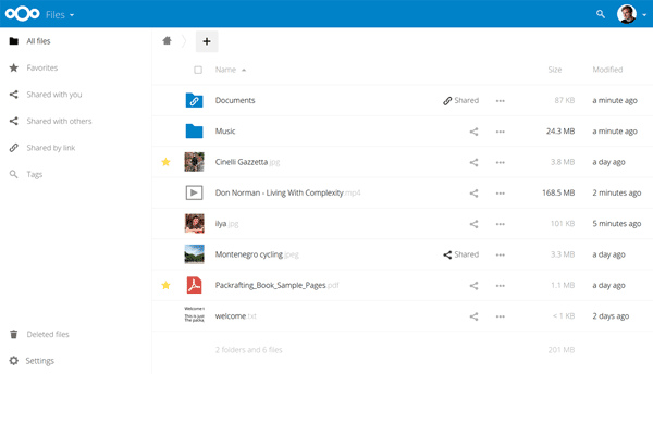 • Nextcloud offers an easy to use user interface which comes with search functionality, favorites, tags and even more ways to quickly reach the files you need