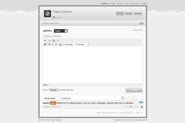 PageCookery is the first public offering of single-user version of the open source microblogging program.