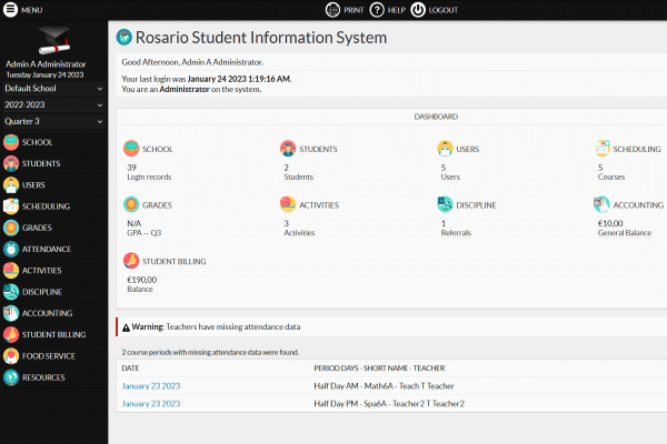 RosarioSIS is a Free & open source Student Information System (SIS), also known as School Management System (SMS) or even School ERP.