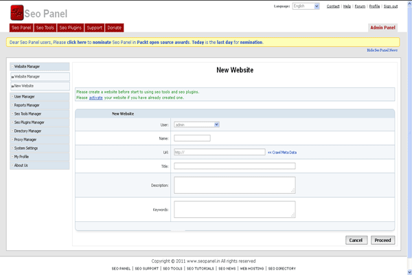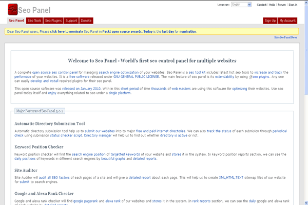 Seo Panel is a complete open source seo control panel for managing search engine optimization of your websites.