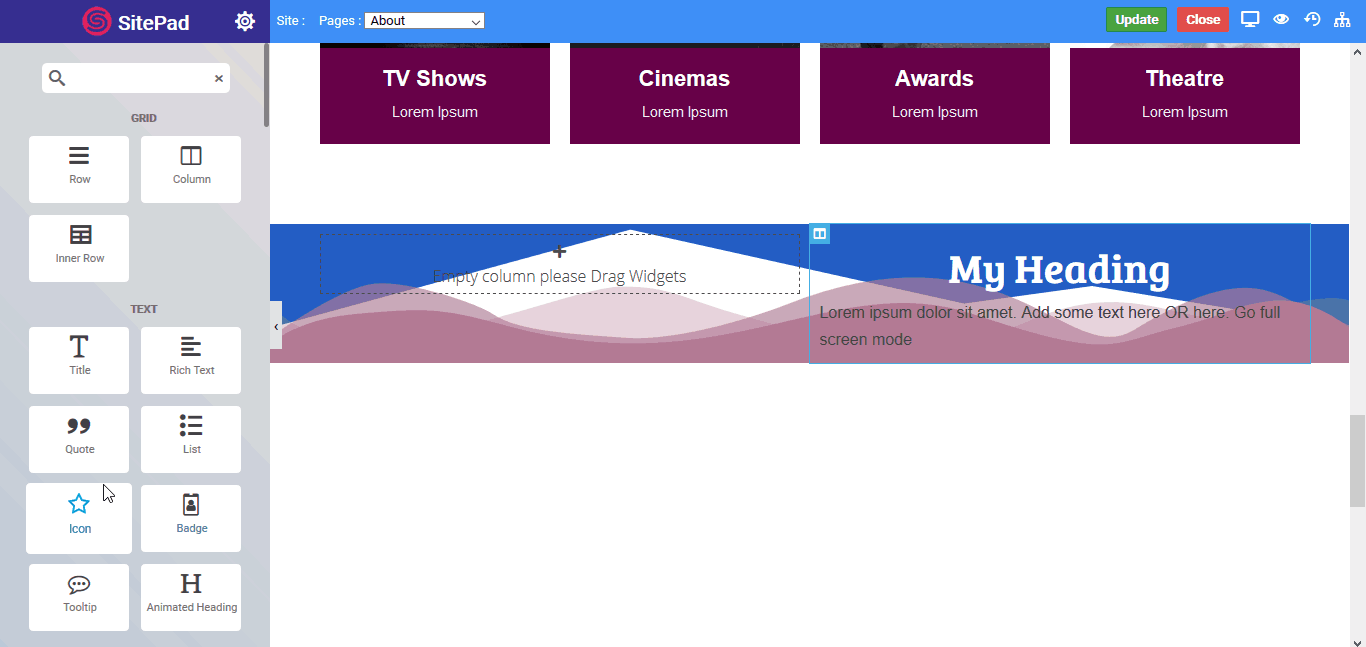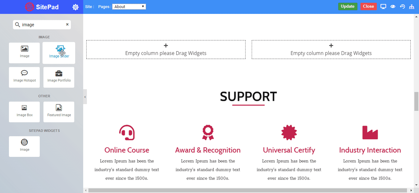 Simple Drag and Drop Interface to create beautiful websites without any technical knowledge