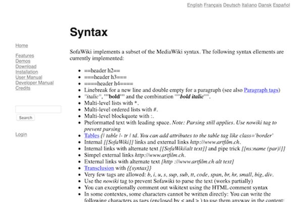 • Compatible to MediaWiki Syntax, so you can migrate to MediaWiki as a fallback.