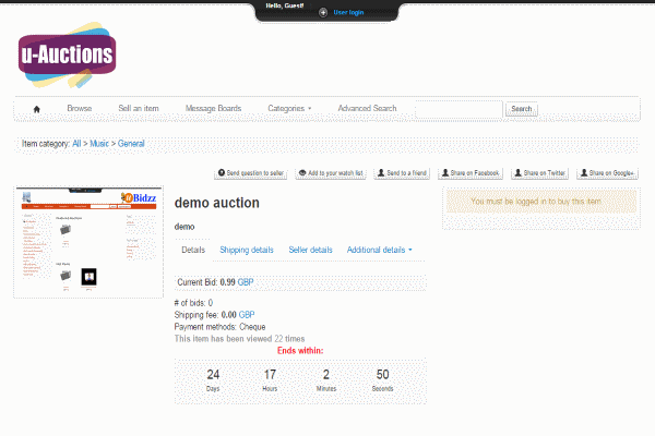 • Share auctions allows the user to share auctions on Google+, Facebook and Twitter