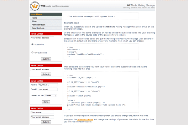 • Easily install Webinsta Maillist