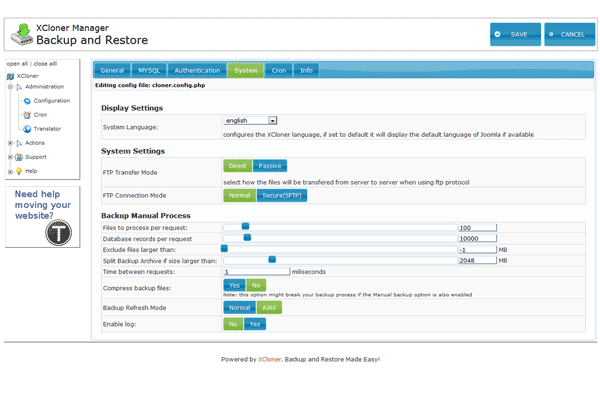 XCloner works as a native Joomla backup extension, Wordpress backup plugin and Standalone website backup application.
